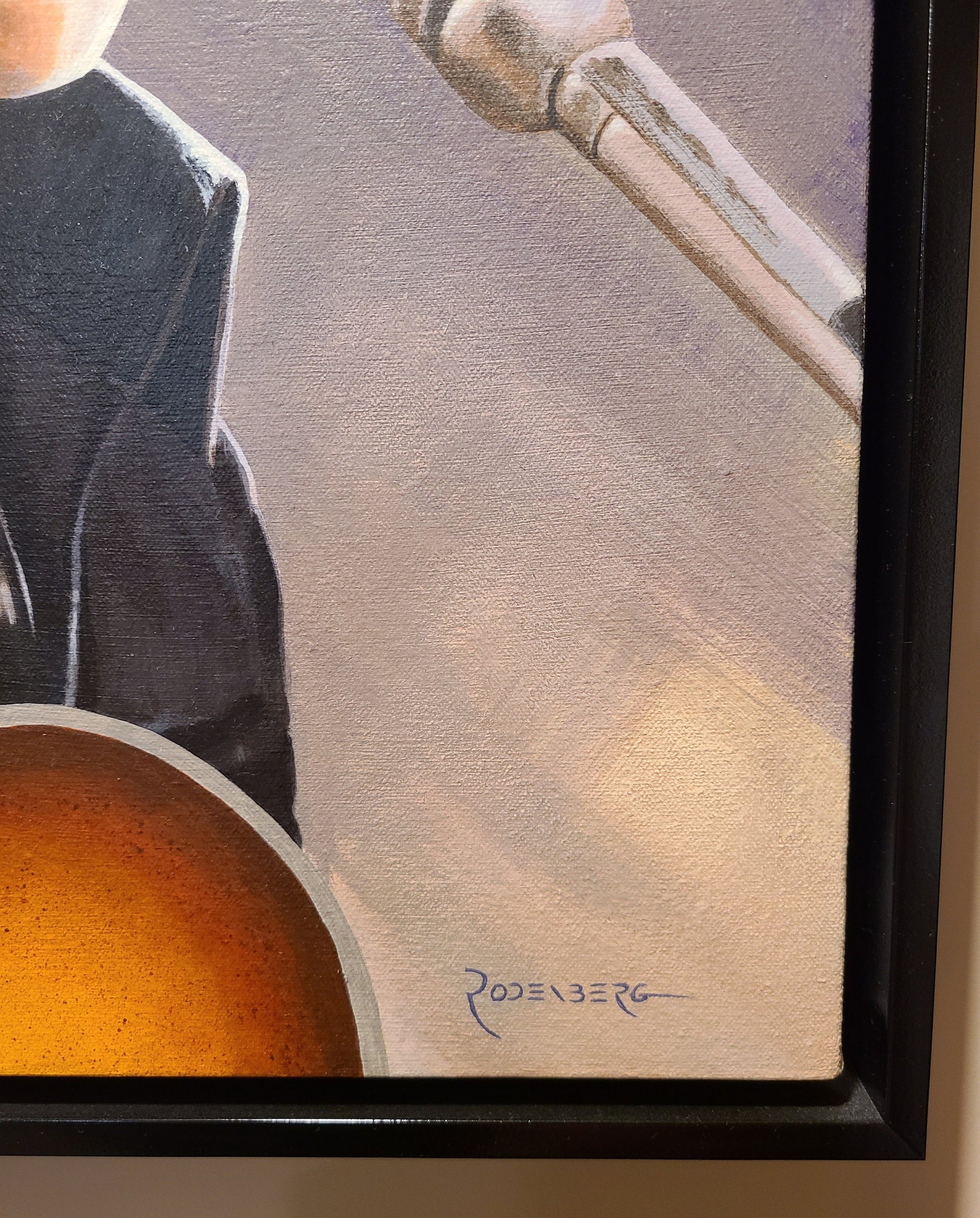 This is an original painting, not a reproduction. Painted with professional acrylic paint on a primed stretched canvas. Protected with satin varnish. Framed in a glossy black floater frame. Wired on back, ready to hang.